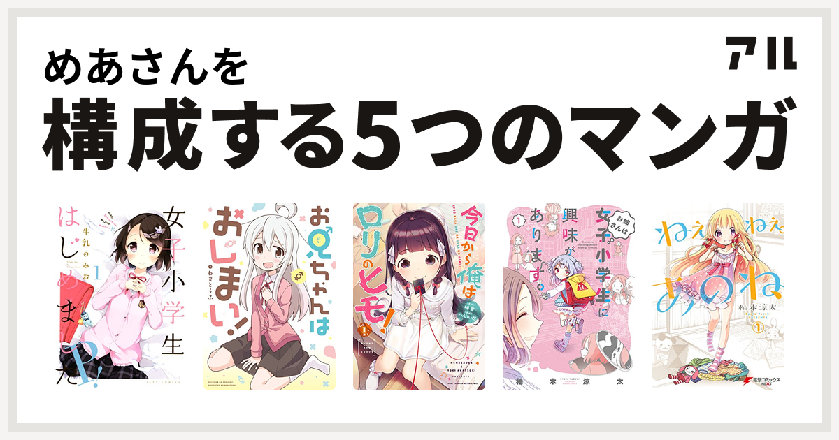 めあさんを構成するマンガは女子小学生はじめました P お兄ちゃんはおしまい 今日から俺はロリのヒモ お姉さんは女子小学生に興味があります ねぇねぇ あのね 私を構成する5つのマンガ アル